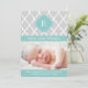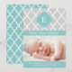 Modern tillkännagivande för födelse har en elegant quatrefoil mönster och kan vara personlig med ditt barns information, monogram.