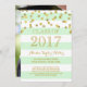 Fotokortsklassen för anpassningsbar i Studenten annonsering 2017 i ljusmynta och vita rand mönster med roligt guld conetti, observera att guld endast har fotografisk effekt.