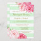 Anpassningsbar-middagsinbjudningar i lätt pastellmint grönt och vit rand mönster med vintage vattenfärgblommor och guld färg text.