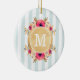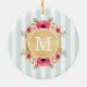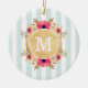 Mint Rand Watercolor Flowers Faux Guld Monogram Julgransprydnad Keramik