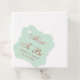 Bröllopet gynnar märkre för ett mynttema och ro guld bröllop färg. Bakgrunden är mint grönt färg. Orden Mint to be är skrivet i (faux) ro guld, i ett kalligrafiskt elegant. Under dessa står namn och datum i kapitäler, i ett liknande färg.