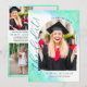 She did it! Tell your friends and relatives of your daughter's achievement and invite them to the party celebrating her graduation, all with one double-sided photo card. Your daughter's photo will be printed against a dreamy background of mint, teal, turquoise, and blue. She did it! is written along the side in fuchsia pink. The graduation party invitation is printed on the back along with four more photos, so you can add recent photos or childhood photos or a little of both to show your daughter's journey through childhood and adolescence.