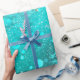 Abstraktens bakgrund av turkos, smulat, texturerad folie.