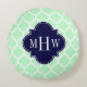 Mint Vit Marockansk #5 Marinblå 3 Initial Monogram Rund Kudde