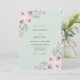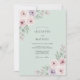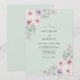 Denna design har en lugn mintgrön bakgrund prydd med mjuka vattenfärgblommor. Delikata rosor i nyanser av rosablommor och lavendel-lila accentuerar hörnen, åtföljda av dämpade gröna bladrika kvistar. Den eteriska estetiken skapar en fantasifull stämning perfekt för en romantisk vårhändelse.