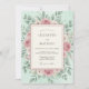 Denna design har en mjuk mintgrön bakgrund prydd med en frodig arrangemang av dammig rosa rosor och salvia eukalyptusblad. Den romantiska akvarellestilen skapar en eterisk atmosfär perfekt för en säsongsbetonad händelse. Paletten balanserar pastelltoner med känsliga botaniska detaljer.