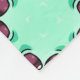 Handtorkar med en mintgrön bakgrund som visas på en hyllning har ett geometriskt blommönster i svart och rött. En handduk är vikt för att visa dess mönster.