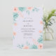 Denna design har en mjuk akvarellpalett i mintgrön, persika och blek lavendel. Ömtåliga echeveria-succulenter är parade med mjuka rosor och luftiga bladkvistar för en eterisk estetik. Den romantiska kompositionen skapar en lugn och fräsch atmosfär perfekt för ett säsongsbundet evenemang. Dessa botaniska element ger en lekfull men sofistikerad touch.