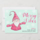 Personlig julkort i mintgrön och rosa med en glad tomte och texten "Merry Vibes" för att skicka de varmaste hälsningarna till dina nära och kära. Baksidan är dekorerad med snöflingor.
