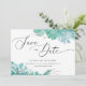 Vattenfärg mintgröna blomster-suckulenter Spara datum med elegant skrivstil för vinterbröllop.