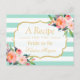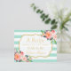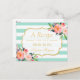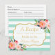Mintgröna randiga blommig bröllopsfest-recept vykort