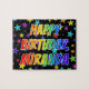 Denna livliga och livfulla pusselpussel med födelsedag är utformad med meddelandet "GRATTIS PÅ FÖDELSEDAGEN, MIRANDA", där tecknen har ett färgstarkt regnbågsspektrum som inspirerar gradienten mönster, förutom roligt stjärna fält, mönster. Ett så pass dynamiskt pussel kan vara ett roligt sätt att skicka ett hälsning-födelsedagsmeddelande till någon som heter Miranda. [~Z0000468]