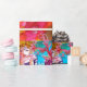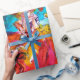 Färgfull, vit och vibrerande venetiansk maskerad karaktär. Den vackra, sofistikerade blondinska kvinnan är sitta med röd ros och en luddig mask i hand med mousserande guld fuchsivävnader av en baroque maskerad boll-dräkt med fjädrar och en hund. Vattenfärgning med ljusa färger färg i ,gult blå rosa, grönt, guld sparkles och silver, inspirerad av tecknen från konstkomedi (Commedia dell'Arte) , karnival av Venedig och venetianska luddermasker.Denna coola och konstnärliga design är också vacker vid särskilda tillfällen, födelsedagar, juldagar, helgdag,Alla hjärtans dag,Mardi Gras ( Tjock tisdag ) säsong