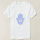 Den judiska och muslimska symbolen designad för att avvärja det onda öga. Hand av Fatima eller Miriam hamsa. Utskärningen av öga i handflatan med rosa hjärtiris. Två färg-vektordesign.