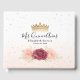 Skapa din egen elegant quinceanera-gästbok genom att utforma en lätt gör-det-själv-mall som du kan anpassa med ditt namn, monogram, foto på "Mis Quince Anos" och andra detaljer. Den eleganta blomsterkonsten av Raphaela Wilson framhäver akvarellrosor i burgunderrosa med ljust gröna blad tillsammans med falskt metalliskt guld, glittergnistrande cirkelkonfetti och en kunglig prinsesskrona ovanpå en ombre-färgövergång. Om du bestämmer dig för att anpassa denna vintage-sagodesign ytterligare kan du ändra bakgrundsfärgerna och även redigera den kalligrafiska skriften och den moderna typsnittsstilen till ett annat alternativ. Du kan också välja en rose gold-krona eller en svg-grafisk version där du kan klicka på den och ändra den till valfri nyans. På baksidan av de blomsterprydda gästböckerna finns möjlighet att lägga till din egen bild eller helt enkelt lämna den tom. Oavsett om du firar en burgunderrosa quinceañera, en sweet 16-födelsedagsfest, en sagobryllup, en brudshow eller en prinsess-flicka-baby shower, kan dessa personliga akvarellgästböcker passa tillfället genom att omformulera texten. Kategori: eleganta gästböcker; mexikanska/spanska prinsessfödelsedagsgäst