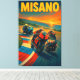 Känn rytmen från Rivieran. Denna Misano MotoGP-duk fångar energin från Marco Simoncelli World Circuit, där hastighet möter Adriaterhavet. Från de snabba svepen genom Curva del Carro till den snäva svängen vid Quercia, för denna konst till väggarna den adrenalin som känns under en italiensk MotoGP-helg.