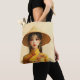 En ung flicka som bär traditionella vietnamesiska kläder, som verkar vara en áo dài. Hon är klädd i en sjudande gult áo dài, med en slående foenix mönster. Flickan har ett känsligt ansikte, med rött läppar, stort mousserande ögon och långt svart hår som flyter försiktigt ner.