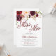 Miss till mrs burgundy blommigt boho inbjudningskort för möhippan.