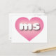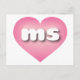 Det här vykortet har ett rosa hjärta med ett vitt tvättat centrum som innehåller de feta, vita, nedre brev ms i fodral, en lekfull förkortning för förkortningen Mississippi, magnolien. Baksidan av vykortet är tom och väntar på din anpassade text och dina handskrivna känslor.