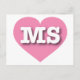 Detta vykort har ett pulserande rosa hjärta som innehåller den feta, vita, övre medlemsstaten fodral brev, förkortningen officiell för Mississippi, magnoliet. Baksidan av vykortet är tom och väntar på dina handskrivna känslor eller anpassade texter.