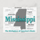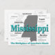 Mississippi-stolpe, inklusive karta silhuette med städer, städer och smeknamn.