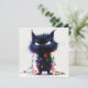 Fördra julen med det här roliga, grinig katt intrasslad i lysande julgran ljus. Ett perfekt julkort för katt älskare och humor älskare
