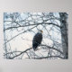 Ett foto från Örn sitta vid träd gren, tittar på ena sidan, med en biet av fisk som flyter från dess näsa. Fågeln verkar ha en böjd brow, vilket tyder på att den är avskyvärd för den som störde den. Träd som örnen är inkörd i har inga löv eftersom den fotograferade scenen var på vintern. Upphovsrätt ©2021 Kimberly J Tilley.