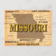 Antique Missouri statskrytm, inklusive karta silhuette med städer, städer och motto.