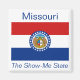 En autentisk kvalitetsbild för bran av flagga Missouri mellan namn och smeknamnet över en flagga-färg-bakgrund. Karta härlett från bilder på nationalatlas.gov.