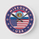 Missouri med flagga Missouri och flagga i USA färg, avrundat. Emblem av Missouri. Förseglingen av Missouri. Samling i USA Stater.