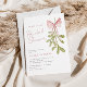 Fira bruden med denna minimalistiska vinterbröllopsinbjudan med en akvarellillustration av misteltoe med en mjuk dammig rosa rosett.