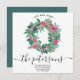 Vår nya hem! En vinter misteltoe blomster jul vattenfärg krans flyttar meddelande och en elegant och modern script kalligrafi typografi på redigerbar vit bakgrund.