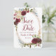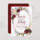 Misteltoe Manor Vattenfärg Frodig Vinter Rosor Design med Handmålad Blommor, Järnek Kvistar, Tall Bar Foliage. Färgrik Marsala, Vin Merlot Röd, Burgundy, Elfenben Kräm, och Grön. Med Virvlande Chic Typografi Borste Skrift Typsnitt, och Roséguld Glitter Folie, Vattenfärg Målarpensel Drag, och Elegant Oval Ram design - Bröllop Spara Datum Kort!