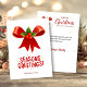 Dela varma julhälsningar med detta eleganta julkort som har ett rött band högst upp med en festlig misteltoe och ljusröda bär i mitten. Nedanför finns ett glatt “Julhälsningar”-meddelande omgivet av mjuka gula gnistor, vilket skapar en klassisk och glädjefull juldesign perfekt för att skicka till nära och kära. GCard-007