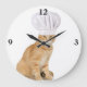 Gullig orange katt som fast beslutsamt stirrar och ha på sig en kockhatt, redo för att laga mat ditt favorit- mål.