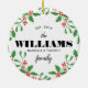 En klassisk helgdag, den här krans av hull och mistlar omger din familjs monogram och klassiska svarta typ, medan den omger din familj namn och året din familj blev en.