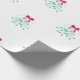 White background. Mistletoe with red bow Christmas wrapping paper.