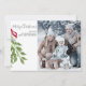 Den här designen har ett god jul, ett rött och grönt, söt mistletoe, ett fotokort med typografi, penselskript, botaniskt blad, hullbär, ett rustiskt stil, ett minimalistiskt helgdag-kort