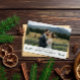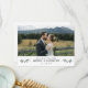 Foto tack för att du fick bröllop-kortet för att tacka dig och önska bröllop gästerna god jul. Lägg till fotot från bröllop och på baksidan önskemål för helgdagarna och för hand för ett nytt år. Lägg även till namn, framtagen av mistletoe twigs. Jultemat bröllop tack för att du fick kort med mistletoe twigs.