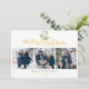 Söt vattenfärgsmistletoe hänger över chic guld-skripttypografi i God jul på dessa elegant-helgdagskort. Anpassa meddelandet, 3 foton, familj namn och datum på framsidan och lägg till ytterligare ett foto på baksidan eller lämna tomt. Designad av Thisisnotme©