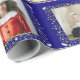 Roligtens helgdag i mistletoe och partridges. Foton i julfamiljen raderade in presenten pappert i skuggor av mörk blått och grädde, med röda, kalkgröna, gult och vita nyanser. Anpassa med fem av dina egna speciella familjs- eller barnfoton. och ditt eget meddelande läser för närvarande God jul från Jackson Family. Designad av Sarah Trett.