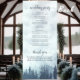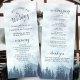Detta vackra bröllopsprogram har en strålande utformning, men ändå elegant, med ett vattenfärgat landskap av berg som är täckta av blåsken eller gräs träd som är höljda i dimma eller dimma. Rubrikerna är skrivna i finare-manusjografi, och det finns utrymme för din ceremoni och bröllopsfest, samt ett kort-tack för dina gäster. Underbart sätt att välkomna dina vänner och din familj till bröllop firande.