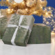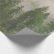 Den här designen har landskapsfotografi av en mistskog med träd bakgrund.