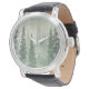 En digital målning eller illustration för eteriska och atmosfäriska färger som skildrar en tät barrskog som är täckt av tjocka dimma eller dimma. Det långa, smalare gräs och evergreen träd skapar djupet på lagrar, där förgrundsinformationen träd är mer detaljerad och djupare grönt, medan träd som går tillbaka in i bakgrunden bleknar i mjuka, blek och desaturerade nyanser av sage och grått. Den allmänna stämningen är lugn, mystisk och lugn, vilket väcker känslan av en tyst morgon djupt i vildmarken.