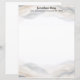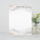 Borders on the top and bottom of this stationery paper resemble distant hills, shrouded in mist. An abstract wave design, rendered in earth colors of beige and gray, very modern and stylish, perfect for professional or casual correspondence.