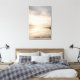 Soft golden sunlight pierces through thick morning mist over a calm lake, creating a luminous path of reflection across the water. Tall reeds line the shore while distant trees fade into the haze, and the sky blends warm peach and rose tones into pale blue-gray. The composition radiates profound stillness, gentle renewal, quiet hope, and the simple beauty of nature at first light—ideal for meditation rooms, bedrooms, home offices, therapy spaces, minimalist living areas, or as soothing gifts for anyone seeking peace, mindfulness, daily inspiration, or a gentle reminder of new beginnings.