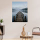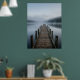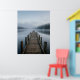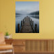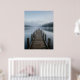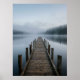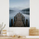 A serene and atmospheric view of a wooden pier stretching into a calm, mist-covered lake surrounded by a quiet forest. Soft fog blurs the distant trees, creating a peaceful and meditative mood perfect for modern interiors. This minimalist nature composition evokes stillness, reflection, and escape from daily stress. Ideal as wall art for living rooms, bedrooms, or office spaces, this image blends natural beauty with a clean aesthetic, making it a timeless decorative piece for any environment.