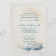 Vattenskärtslandskap i romantiskt fuktig teal, akvamarin, torkat gräs guld. Pappra struktur benvitt på ansikte framsidan och bakåt. En naturlig evokativ syn på vatten och marskgräs. Tappning är teal och omvänt är dammig vattenblått. Kustnära bröllop, sommar eller moderna romantiska teman. Boho med dekorativa gräs är ett annat tema som skulle vara harmoniskt med denna utformning. Typsnitt och färg har varierat.