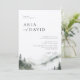 Elegant vattenfärgsskog, mistskog i gräs, bröllopsinbjudan. Modern och enkel typografi formger stil-mall med detaljmall på baksidan.