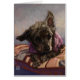 Misty den vackra lilla pudel-blandningen, som är målad av Traci Van Wagoner, som lägger en slående och röd kudde med ett öra högt på hennes huvud.